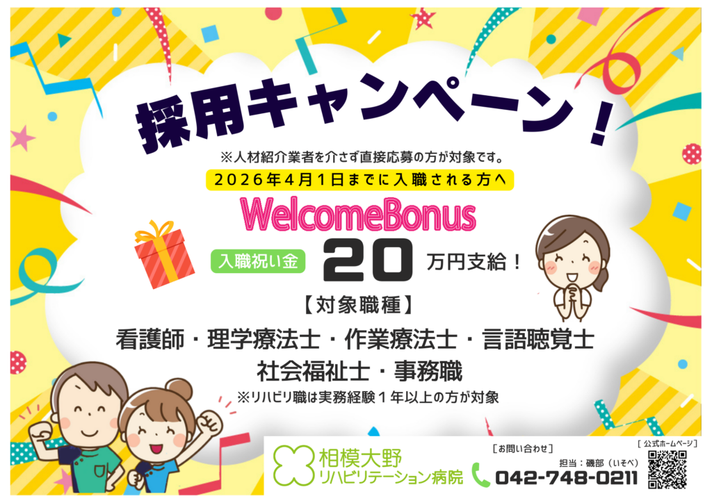 相模大野リハビリテーション病院では、採用キャンペーン2025 を実施いたします。
