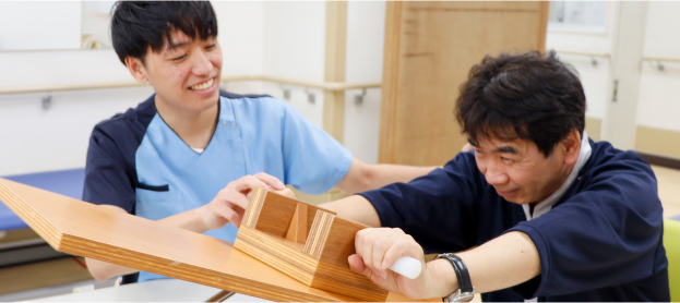 入院中のリハビリテーションだけではなく、退院後の生活を見据え、各種手続きや情報提供など、退院し社会や家庭に復帰できるようサポートも行なっていきます。